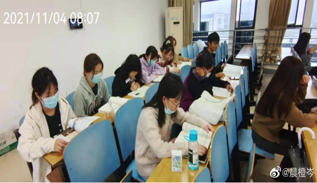 截至2021年11月20日,英国365上市公司英国上市官网365开展“二十一天晨读打卡•五勤课堂”活动圆满结束。我院同学积极参与学校晨读打卡活动,做到了“人人参与,日日出勤”。晨钟暮鼓,不辜负汗水和前路;破釜沉舟,不愧对时光和自己。21天悄然纵逝,蓦然回首,已是新的开始。一路风景,不变的唯有努力坚持、不忘初心的马院人。21天打卡之旅的回忆,短暂而珍贵。一起早起,一起晨读,一起遇见持之以恒的自己。晨读打卡,是对自己一天的时间安排养成规律,是一个人生活自觉、生命自觉的开始。晨读有助于同学们养成良好的作息习惯,改变容易出现的散漫作风。晨读更能稳定心态,适应以自学为主的大学生活,使同学们每天都有巩固和收获。本次活动还给了在校同学集体晨读、相互鼓励、互帮互助和建立友谊的良好机会。前期,每天的晨读都由班委提前一天在班群里通知时间地点。到后来,同学们都主动形成了早起晨读的好习惯,无需班委的督促,每天都能及时到位。