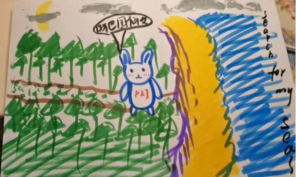 在“认识你自己”环节中,同学们用纸和彩笔画了一幅代表自己的画像,可以是小动物、卡通人物、一种颜色抑或是一个场景,画好后,我们以自愿的形式进行分享,其中,裴子鋆同学的自画像尤其令人深刻,从中我们得知她内心的可爱与天马行空。接着,我们用另一张白纸折成八等份,每一份意味着人生的一个十年,在这八行中我们记录、预判下人生八十年最深刻的事,这不仅是一个心理游戏,更是我们对未来的想象与擘画,意义重大。