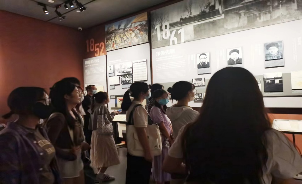 随后,学生们参观了长沙市博物馆,在长沙历史的娓娓道来中博古参今、追根溯源,领悟到历史的厚重和传承。长沙博物馆建筑起伏跌宕,如同一部石头的史书,记录着长沙历史发展的历程,下设有五个展厅。同学们从“湘江北去”走到了“中流击水”,从长沙古代历史文化走到了近代历史文化,在这条漫漫历史长河的流溯中感受到人类历史创造和发展给人带来的震撼和敬畏之心,追溯到了自身安生立命的历史根源,因此这部“石头史书”的实践参览给同学们上演了一堂深刻透彻的、时间线跨越数千年的历史教育和思政教育的社会大课堂。