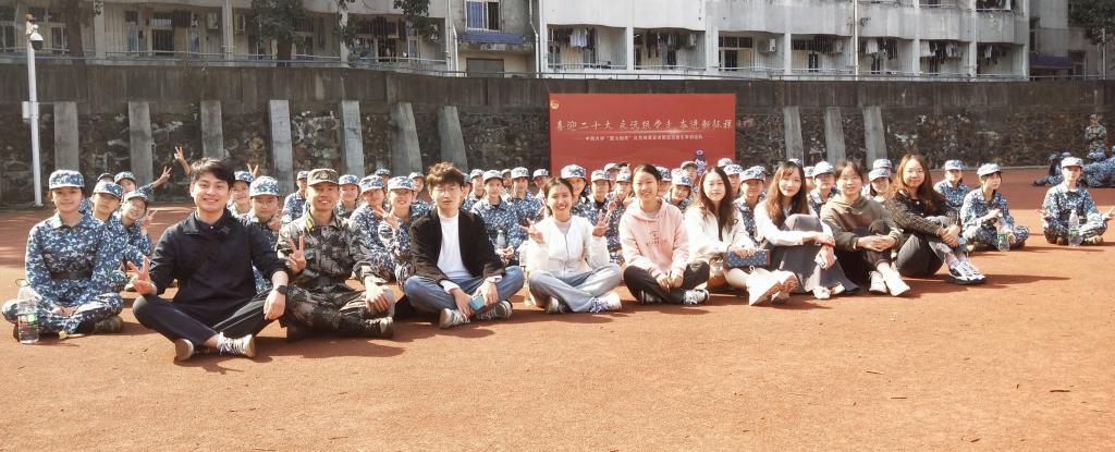 我们不是一个人在训练,身后还有许多关心我们的人。陈老师和龙学姐时刻陪伴在我们身边,不时询问我们的状况;龚老师带着满满的零食和关爱来看我们;学院领导来到训练场地,与我们深入交流,杨书记回忆起他的军训,鼓励我们克服困难,积极向上,努力完成军训任务;我们院的学长学姐也给我们带来了零食,并祝福我们军训取得圆满成功。同学们纷纷说道“在马院好幸福!”“其他排都羡慕死了”,我们也切实感受到了马院这个大家庭的温暖。我们的教官娄教官,同时也是我们的学长,训练时,他是严厉的;平时他又是平易幽默的,让我们感到亲切。