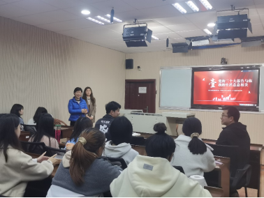 思政2001班于608教室召开班会,班会以二十大报告为导向,先后开展了“党的二十大报告与你我生活息息相关”“金句解读”以及“蓝图描绘”活动。在“金句解读”活动中,班导师胡文根老师就“党找到了自我革命这一跳出治乱兴衰历史周期率的第二个答案”这一金句为同学们进行理论阐述,对此历史脉络的清晰讲解使得同学们更加深刻地认识到“以自我革命精神推进全面从严治党向纵深发展”的历史意义和时代价值。