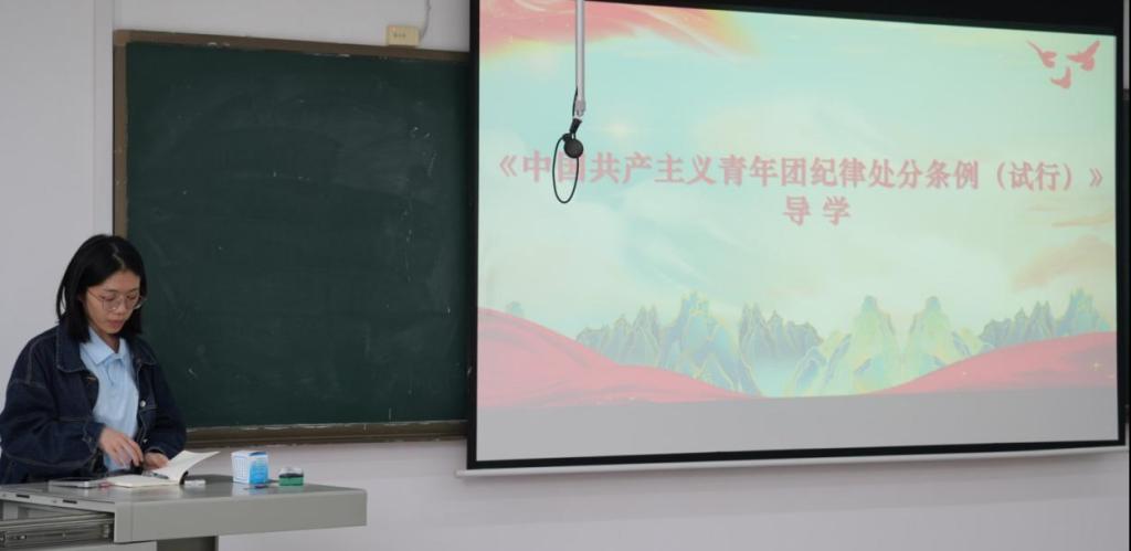 随后,龙老师带领大家进行《中国共产主义青年团纪律处分条例(试行)》的学习,着重强调了违反团纪行为“负面清单”等内容,并号召大家主动学习团纪团规,养成纪律自觉,切实树立好共青团员的良好形象。