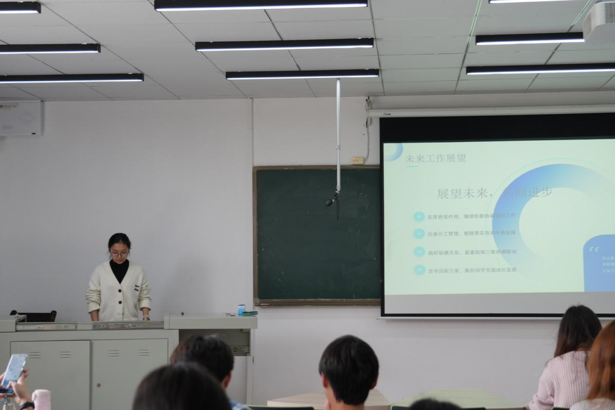 述职大会上,各部门就上学期工作内容进行汇报,回顾并总结了各部门的工作内容和完成情况,并在最后反思了工作中存在的不足及对未来发展的展望。随后团委书记龙雯静老师提出指导意见,望各部门继续加强学习、优化活动内容等,同时叮嘱学生干部要以身作则,善作善成。
