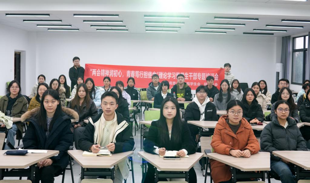 在理论学习环节,学生会组织建设部周晨宇同学领学,围绕全国两会精神核心要点、中国实践与青年担当三个方面进行深入解读,重点介绍了政府工作报告中关于高质量发展、民生保障及教育强国建设等内容。与会成员结合自身学习工作实际展开交流研讨,进一步深化了学习成效。