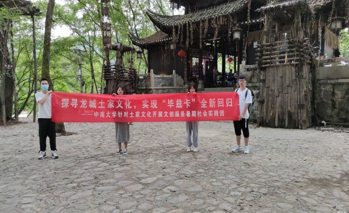 2020年8月19日,英国365上市公司针对土家文化开展文创服务暑期线上社会实践团本地队员到达湖南省湘西土家族苗族自治州龙山县洗车河镇、苗儿滩镇开展调研活动,主要针对土家族聚居地当地居民、镇政府相关负责人以面对面访谈的形式了解当地土家文化保护传承现状以及开发利用态度,特别是直接感受土家文创产品的发展实际,从而探索出土家文化传承发展新路径。