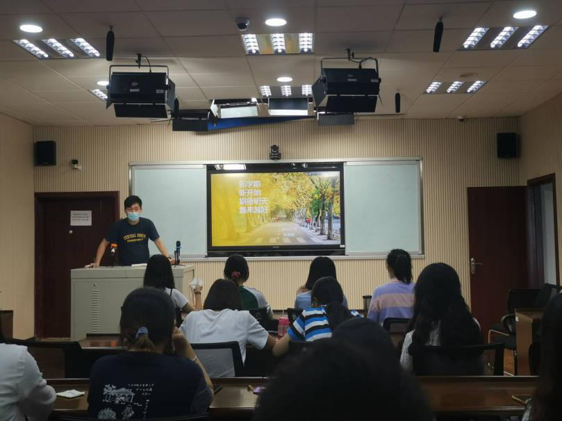 最后,由杨雪宾副书记发表开学寄语。杨书记认为第一个方面,需要把大家进校之后属于一个什么样的状态和大家说清楚。目前,教育部到湖南省、学校,给我们所定的基调是常态化疫情防控时期。一是指我们个人日常的防控,出现异常及时报告。二是我们要恢复正常的学习生活秩序。第二个方面,大二我们要对自己的人生要有新的安排,在这个过程中要多与老师请教学问、人生规划,我们一定要有对自己负责任的思考。此外,大二前三名可以考虑选专业的问题,在这个方面我们鼓励每个人为自己的前途负责任。我们学校现在也有一个新的政策即本博,大家也可以有所考虑,到后期正常推免保研也会开始。杨雪宾书记还重点就担任学生干部的意义与价值与同学们进行了探讨。我们需要转变观念,为同学服务是我们自我提升的一种实践。此外,学院为同学们完全开放。学院为大家提供了自习室、阅览室,也能够为大家的心愿书单提供一定的支持。作为人文社科的学生,我们一定要多读书,大学四年是我们最宝贵的可以好好读书的四年。