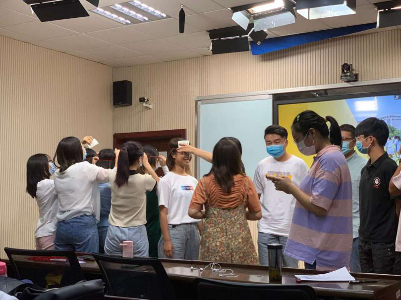开学注意事项交代清楚之后,思政1901班同学进行了两个与疫情防控知识相关的小游戏,分别是抢椅子、“害”你在心口难开。游戏的主持人分别是谌立芳、高铭瑞、李海霞同学。趣味游戏增加了大家的交流,也让整个班会氛围进一步活跃起来。