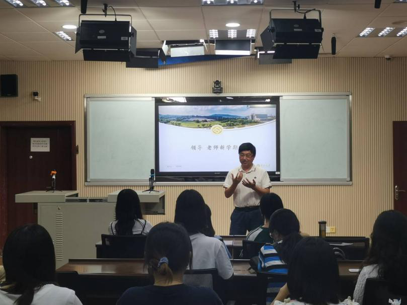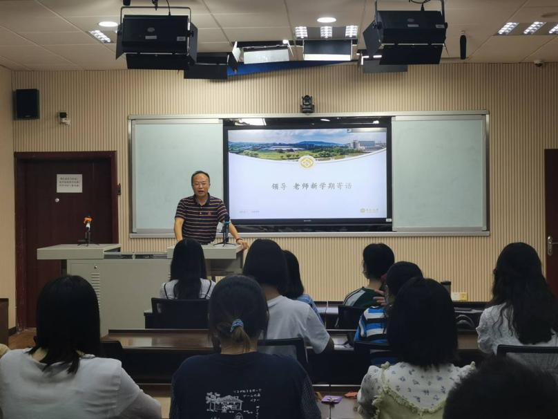 学院领导开学寄语部分,由王翔院长、王希俊书记、杨雪宾副书记发表讲话。王翔院长讲话主要分为三个内容。王翔院长首先表示时隔八个月之后,大家又重回中南的校园,重回马院的课堂。作为大家的老师,首先要欢迎大家回家。其次,在接下来,我们将进入到大二——理想主义阶段,此刻我们将有许多人生的理想以及对未来的憧憬。我们要更加珍惜大二的美好时光,让我们的学识可以充盈起来,为理想而奋斗。第三,疫情还未过去,希望大家能够注意加强身体锻炼,以一个更好的身心去面对接下来的学习生活。总之,热烈欢迎大家回家,希望大家在马列大家庭中学有所获,日有所进,祝福大家!
