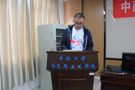 会议第四项,教师代表、本科生班主任胡文根老师发言。胡老师向同学们分享了自己的马克思主义观。胡老师先用三个生动有趣的真实故事向同学们还原了一个既是伟人也是常人的真实马克思;此外并特意强调习近平总书记在纪念马克思诞辰200周年大会的发言:马克思主义是科学的、人民的、实践的理论;希望同学们能够抛弃不经甄别就信以为真的所谓的马克思主义,辞别自吹自擂目中无人的傲慢的马克思主义,并在马克思主义经典著作的深度研读中把握马克思主义的科学立场、观点和方法,真正回到马克思,歌颂马克思,保卫马克思,让马克思及马克思主义更加熠熠生辉。