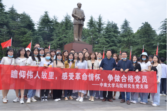 上午,在学院党委书记王希俊老师和研究生党支部书记秘金雷老师的带领下,38位同学坐车到达韶山,进入主要景区以后,大家首先去铜像广场进行伟人铜像瞻仰,然后前往毛主席生平纪念馆进行参观,生平馆常设《中国出了个毛泽东》专题展览,既是毛泽东同志个人生平介绍,更是对中国革命历程的历史梳理,从青少年时期的激扬文字到井冈山时期的乐观昂扬,从延安时期的运筹帷幄到西柏坡时期的自我告诫,一张张图片,一个个物件,让大家深刻感受到了伟人的革命情怀和勤俭自律,大家深深为毛主席的丰功伟绩和伟大人格魅力所震撼。