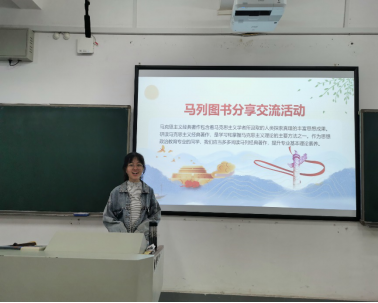 活动的第一个环节是“马列图书分享交流活动”。马克思主义经典著作包含着马克思主义学者所汲取的人类探索真理的丰富思想成果,研读马克思主义经典著作,是学习和掌握马克思主义理论的主要方法之一。作为思想政治教育专业的同学,我们应当多多阅读马列经典著作,提升专业基本理论素养。