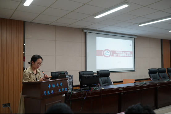 会议第二项,学工办老师陈力瑞发言。首先陈力瑞老师对参加竞选的同学表示热烈欢迎,随后围绕“我们为什么要加入学生组织”的主题,并结合自身经历做了精彩发言。陈力瑞老师表示,加入团学会是可以为自己的发展提供更加广阔的舞台;加入团学会是要坐得住冷板凳,耐得住性子做琐碎工作的;加入团学会应该牢记是为学生服务的,不是摆架子当领导的。最后陈力瑞老师鼓舞同学们在团学会中不断打磨自我,挑战自我,成就更好的自我。