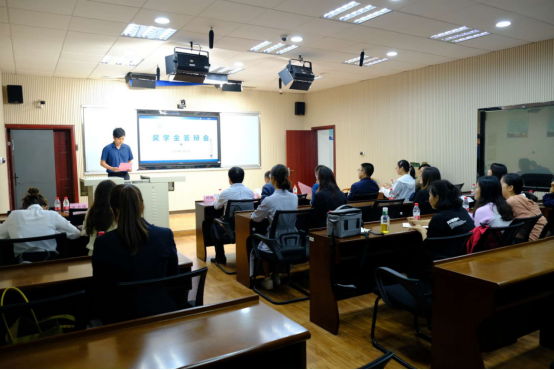 此次答辩会主要由陈力瑞老师负责主持,他先介绍了到场嘉宾,并公布了答辩规则。他介绍道,此次答辩会共有7位优秀学子到场参与评选,国家奖学金和国家励志奖学金申请者分别进行为时五分钟和三分钟的自我陈述环节,评委根据申选材料及现场综合表现评选出最终国家奖学金及国家励志奖学金的获得者。
