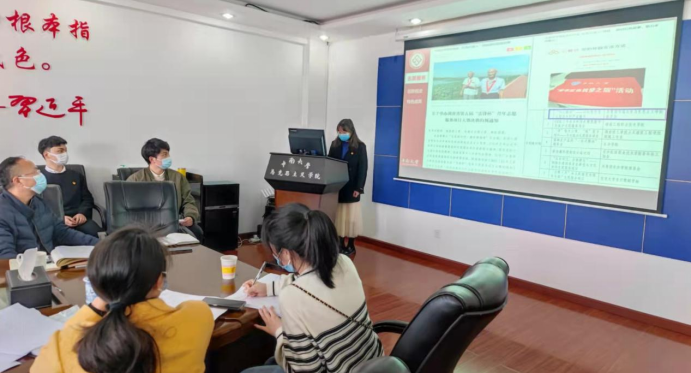 会议第一项,分团委副书记张金卉从志愿服务、创新创业、实践活动三个方面对2021年的团委工作进行汇报。在过去的一年里,我院学生创建红色农产品品牌培育与营销模式,孕育“红色代言人工作团队”,进入“雷锋杯” 志愿服务决赛、寻觅湘“土”团队获得国家级大创立项、第十六届“芙蓉学子社会实践奖”等,我院各团支部“对标定级”工作完成度100%,在各项评比中也都取得了优异的成绩。同时,张金卉提出新学年的展望和信心,2021年马院分团委将继续在党委的领导下,以信仰点亮前行之路,以使命激扬奋进之帆,以优异成绩献礼建团百年,迎接党的二十大。
