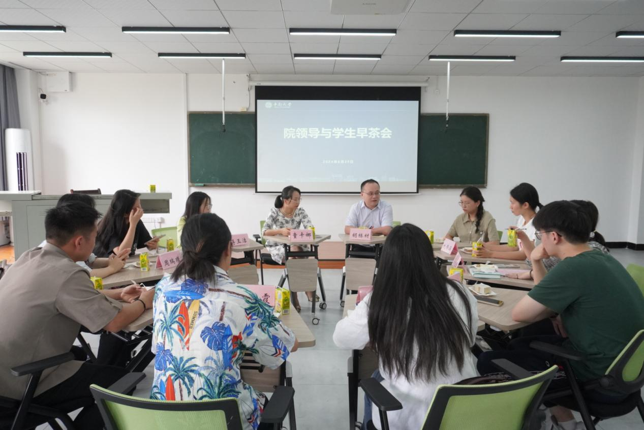 在轻松愉快的氛围中,院领导与学生早茶会结束,同学们纷纷表示要积极备考,多问“过程中”的收获,要有“破斧成舟”的勇气,手敲原著、下“硬功夫”。