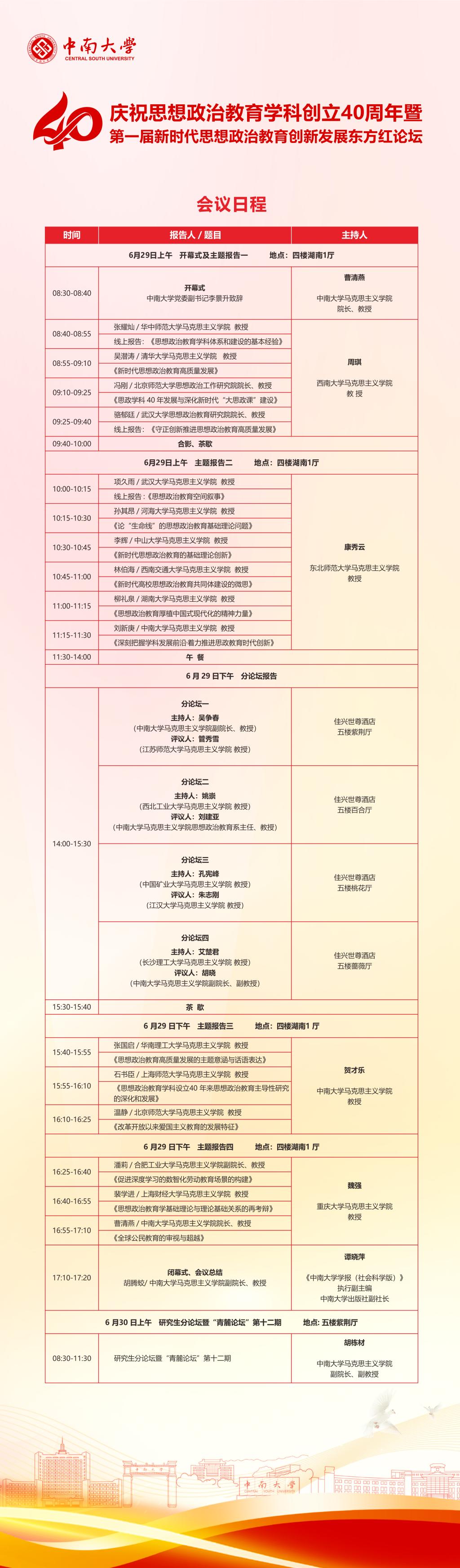 “庆祝思想政治教育学科创立40周年暨第一届新时代思想政治教育创新发展东方红论坛”会议议程