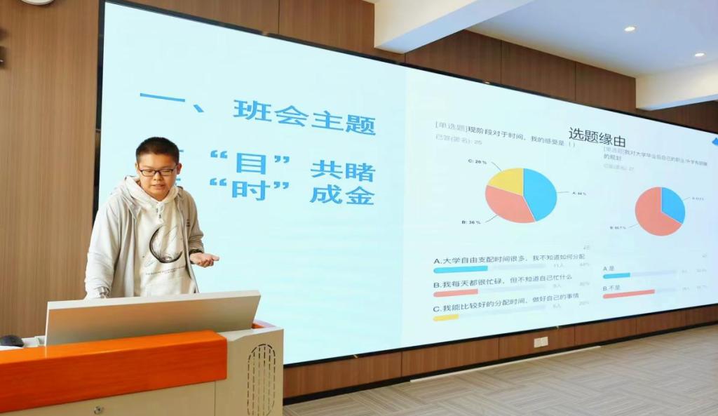 参赛班级的班会设计主题鲜明,立意深刻。如理工预科2404班以“有目共睹,点石成金”为题,旨在从目标确立与时间管理角度为班级树立良好榜样,营造积极向上的学习氛围。