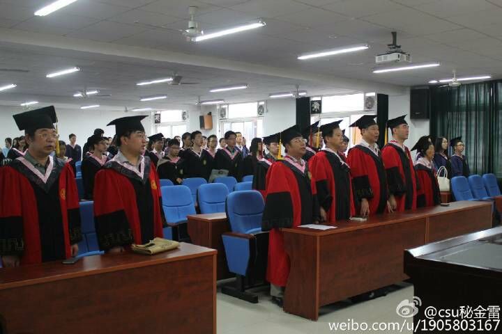 会议在庄严的国歌声中拉开了序幕,嘹亮的国歌激发了全体毕业生昂扬的斗志。首先张卫良院长宣读了授予学位的毕业生名单。紧接着研究生代表林季和本科生代表邬永嘉分别发言,表达了对学院的感恩和不舍,同时对未来生活充满了憧憬。张院长在致辞首先表达了他对同学们的不舍,接着饱含深情地祝福毕业生们,他热切地希望毕业生们能将四年以来在大学所学到的知识和技能运用到以后的学习、工作和生活之中,能以崭新的面貌和积极的心态揭开人生新篇章,全场气氛达到高潮。接下来对由唐海波书记、胡凯教授、曾长秋教授、罗会钧教授等在内的多名老师分别为毕业生颁发学位证书并通过“拨流苏”活动以示祝福和庆祝。会议最后,毕业生与平日里朝夕相处的老师们亲切合影留念。