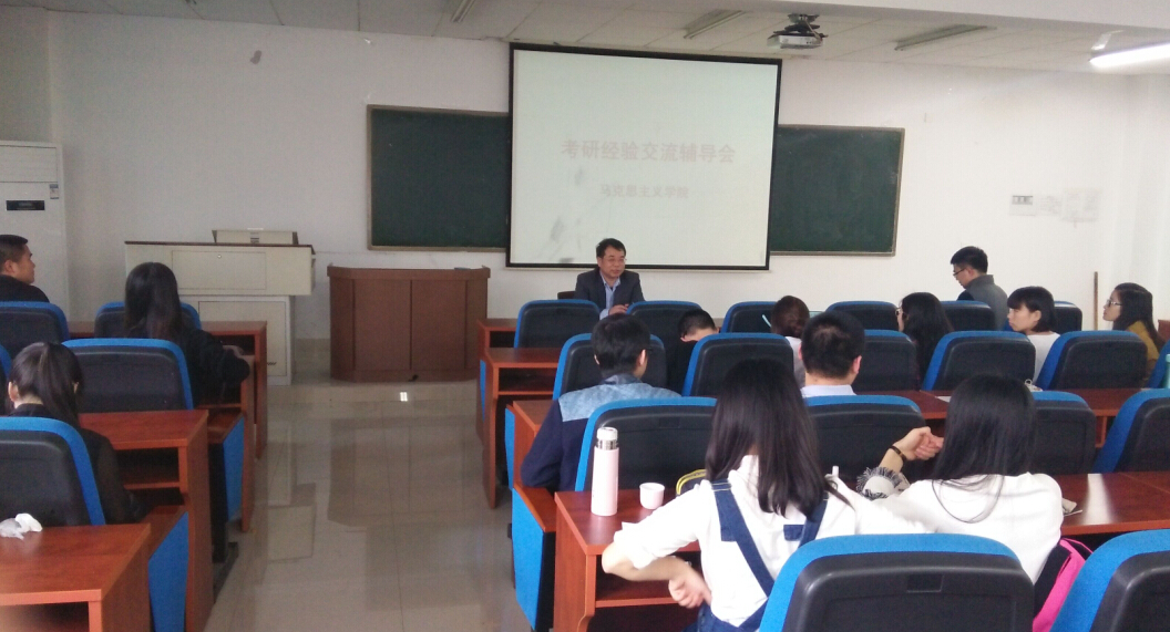 为增强我院学生职业生涯规划意识,进一步使学生明确考研目标,掌握相关考研技巧,016年4月13日下午15时,我院特举办“考研经验交流辅导会”。会议邀请到我院副院长彭升教授、辅导员秘金雷老师以及大四优秀考研保研学生代表,为大家传授考研技巧和信息。交流会由团学会学术实践部部长舒长风主持。