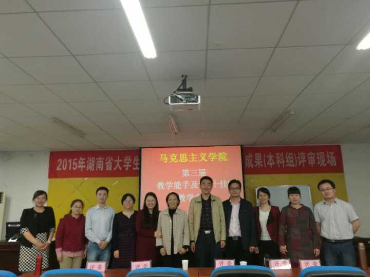 比赛中,参赛老师依次向在场的评委和观摩师生做了精心展示,亮点频闪,精彩叠现。万雪飞老师通过当下最热门的话题“互联网+”来讲解“普遍联系”这一深奥抽象的哲学原理,获得满堂喝彩;薄明华老师以台湾老人思乡之切的感人故事来阐述“维护祖国统一”这一严肃政治话题,收到以情动人,以理服人的教育效果。彭芬老师结合现代国家治理讲解了霍布斯的政治哲学,娓娓道来,深入浅出,给人一种在咖啡馆沙龙中领略令人景仰的大师那“高大上”思想的感觉;周霞老师讲解“新民主主义革命领导”问题,声情并茂;师生互动,唱讲结合,仿佛在导演一政治与历史的巨片,把人带入那严峻的战火纷飞的岁月,在激情中受到政治思想的洗礼。刘勇为老师教学的特点是,逻辑严谨,重点、难点突出,案例教学发人深省,语言简洁流畅,在轻松优雅的氛围中讲解了大学生如何认知“自卑、焦虑、抑郁”等不良情绪困扰的沉重话题,大有“年轻的老教师”风范。胡栋才老师虽然是刚毕业的博士生年轻教师,用他自己的话来说是“抱着学习的心态来参赛”,但给人的感觉是后生可畏,教学中强调学术思辨与理性培养,彰显当代大学教学理念。徐良春老师的参赛教案紧扣学校本科生教学改革中“开放式课堂教学”理念设计教学教案,文本规范、内容齐全、设计科学、重点难点突出,注重了学生能力、素质的培养,令人耳目一新。