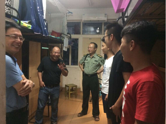 9月4日18点,我院院长张卫良、院党委书记张若飞、党委副书记杨雪宾及16级新生班导师周霞老师、辅导员邹秉虹老师一同前往新生宿舍看望我院16级新生。