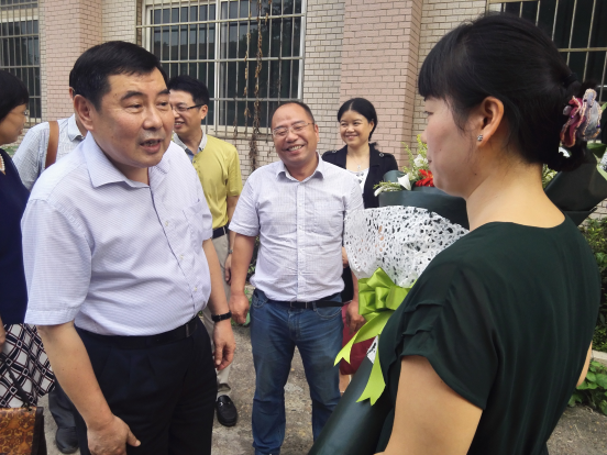 高文兵书记来到英国上市官网365,首先亲切地与我院领导一一握手,并致以“教师节快乐”的问候。在与教师代表万雪飞老师亲切握手时,高书记询问道“我听过万老师的课吗”,还进行现场调查:“教师节来临,你想要花、巧克力还是一桶橄榄油呢?”万老师回答到“我选择花”,并热情接过高书记赠送的鲜花。高书记提出在教师节来临前用一句话概括英国上市官网365应具有的精神,万老师回答:“不忘初心,继续前进”。对此,高书记给予了高度评价。
