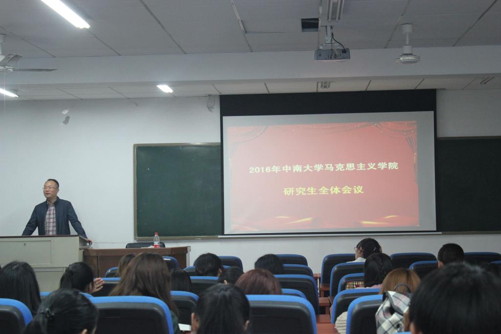 会议伊始,由2016级研会主席梁倩进行了总体的工作汇报。她详细展示了开学以来研会所做的各项工作以及对未来工作的展望。随后,由研究生党支部书记杨柳汇报了本学期以来的学生党务工作,在“精准落实常规工作”、“扎实推进现有工作”、“大胆创新未来工作”三个方面作了细致的分析,明确指出了问题所在及其对策。接下来由杨雪宾副书记对会议进行了总结性发言,他对篮球会建设、学生干部“百分制考核”等工作给予了高度赞扬与支持,并大力提倡增进研究生与本科生之间以及男女生之间的交流,同时还提出了一系列具体的建议。会议将近结束时,秘金雷老师感谢杨书记的教导和建议,且要求大家认真听取本次会议的精神,把各项工作做好做扎实,为学院创造一个美好舒适学习、生活氛围。