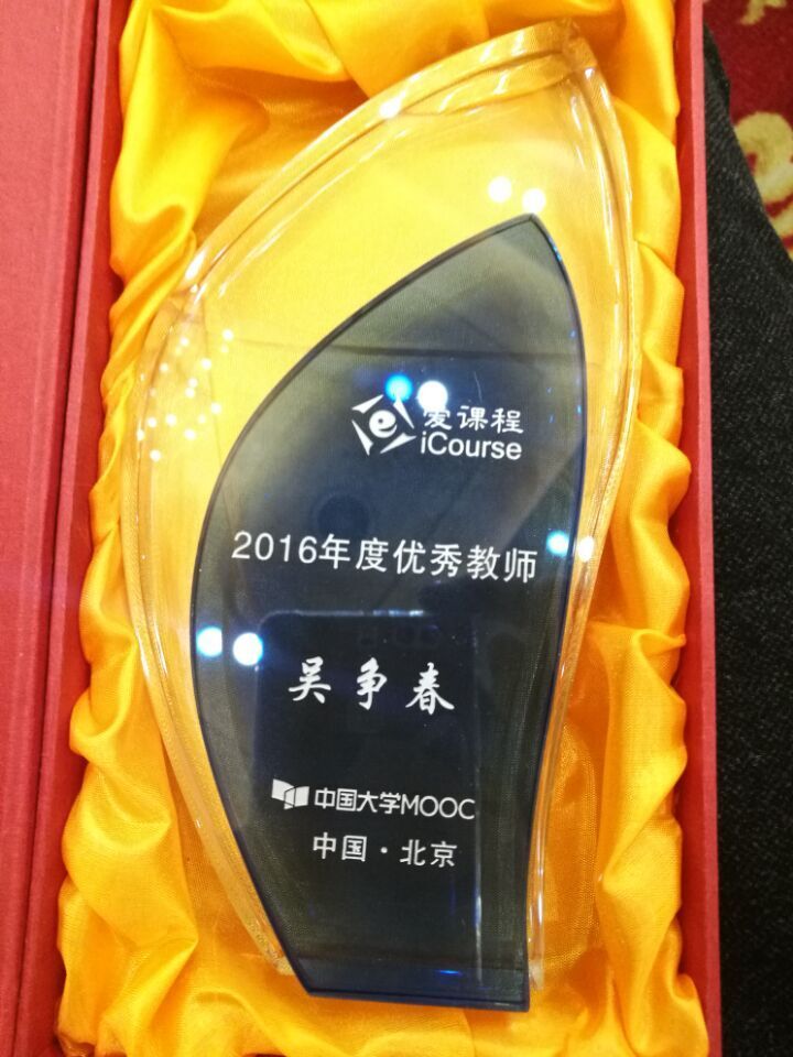 2017年1月11日,全国高等学校教学研究中心、“爱课程网”在北京举办“中国大学在线开放课程论坛”。教育部高教司张大良司长等领导和来自全国一百余所高校的500余位课程团队代表、教学管理者以及有关机构、社会学习者共聚一堂,就我国在线开放课程的建设与应用新成果、新趋势、新变化展开热烈讨论,共同展望在线开放课程未来的发展方向。我院吴争春老师获邀参加此次盛会,并被授予中国大学MOOC“2016年度优秀教师”。