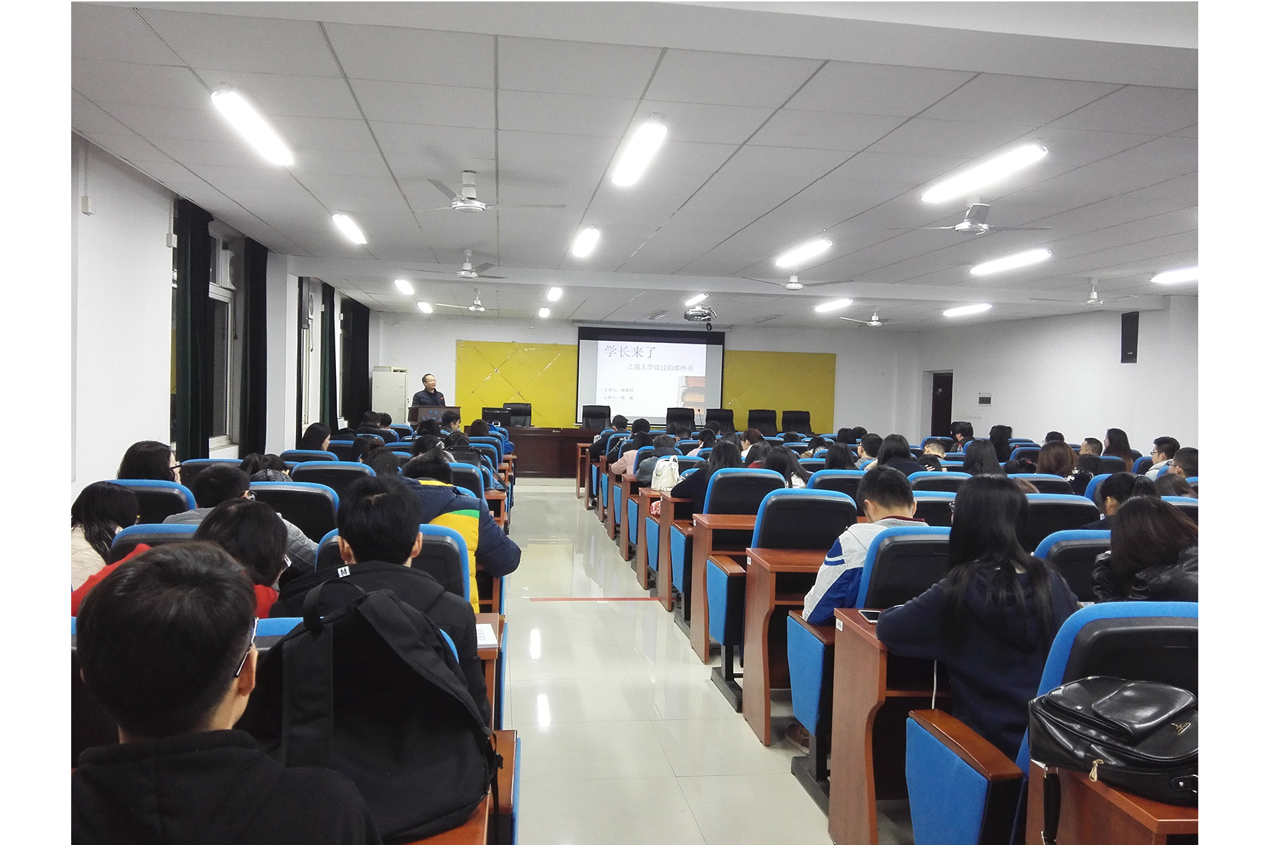 本次主题讲座胡栋材老师以通俗诙谐的方式讲述了学长的读书故事,不仅让同学们学到了前人的经验,更让同学们对于读书有了新的理解,对今后的大学生活有了新的期望。 晚20:40,本次主题讲座圆满结束。