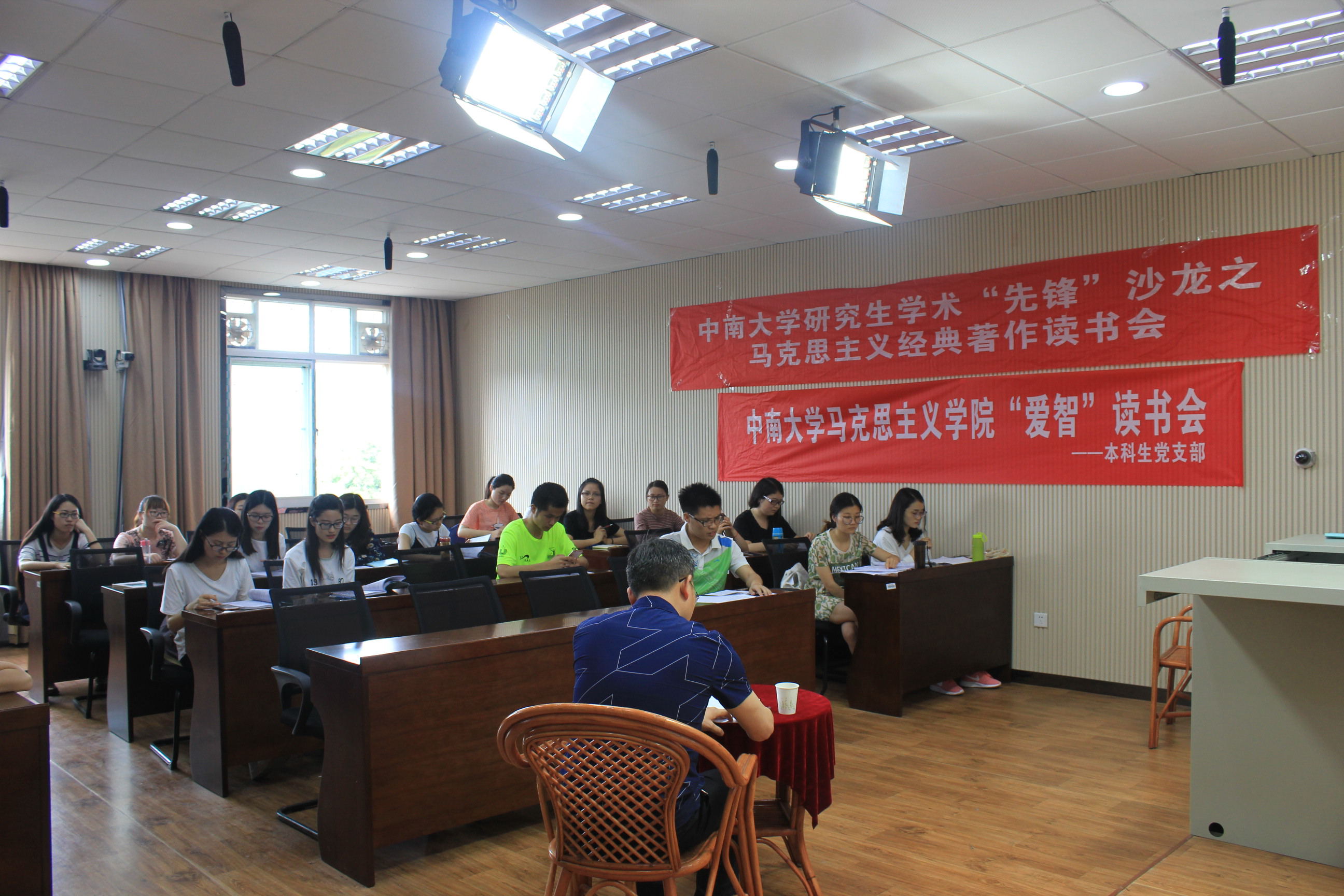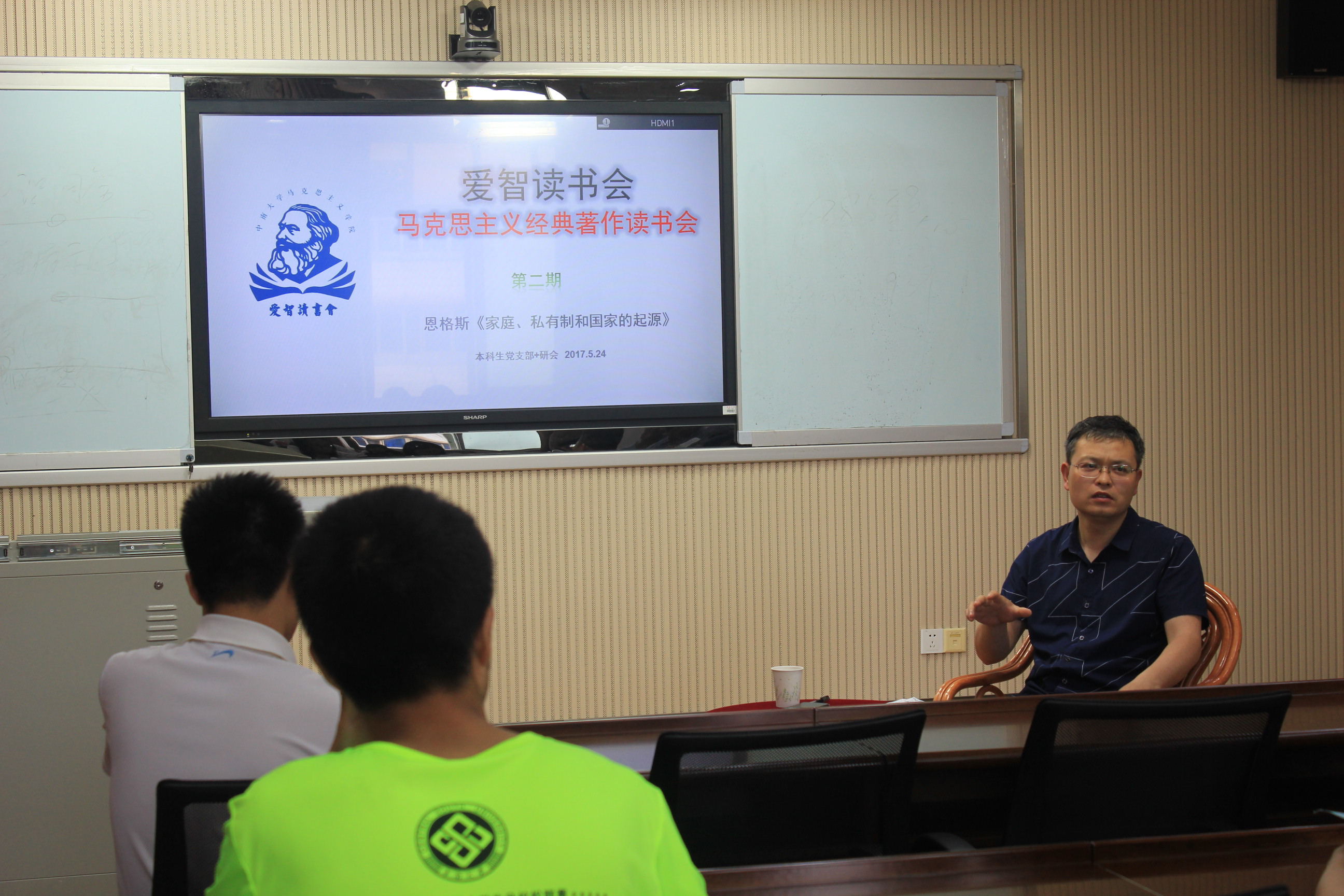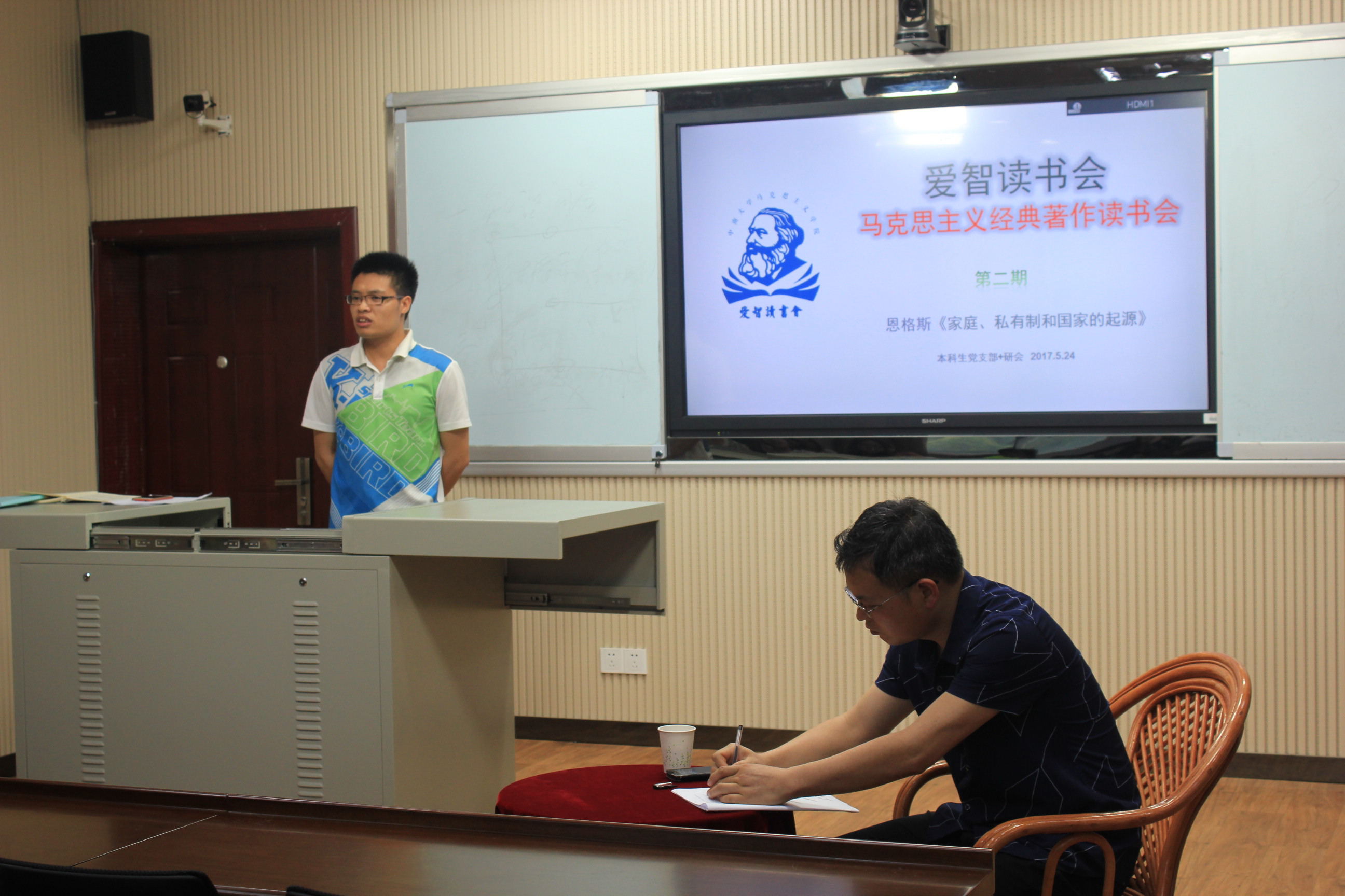 5月24日下午4点,我院研究生学术“先锋”沙龙和本科生党支部“爱智”读书会联合举办第二期马克思主义经典著作分享交流会,交流会在三教608室成功举办。此次读书会邀请到学院王浩斌老师、胡栋材老师、秘金雷老师,2016级全体研究生和本科生支部全体党员参加了读书会。