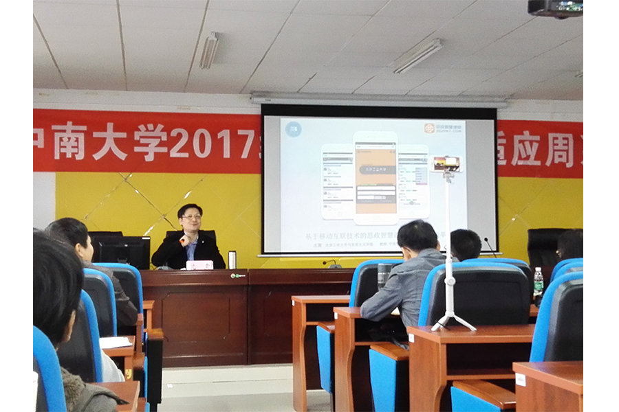 沈老师主要就移动互联技术的思想政治理论课课堂教学改革的背景、改革动因与痛点分析、创新与实践、总结与展望等几个方面进行介绍、阐释,并展示了“中成智慧课堂”教学互动软件平台的各项功能。作为有着十几年高校思想政治教育理论课教学经验的教育工作者,沈老师对思政课教学过程中存在的难点和痛点有着深切体会,特别是对网络信息时代移动互联技术的广泛应用对高校课堂带来的巨大冲击有着深切感受。他自筹资金,组建团队,历时多年,研发了专门辅助高校思想政治理论课课堂教学工作的软件——“中成智慧课堂”教学互动软件平台。既大大提高了课堂教学效率,又便利了师生课上在线实时互动交流,还可以系统同步获取并展示互动数据,能够有效激发学生课堂参与的积极性,并实现全程大数据记录、分析和评价。