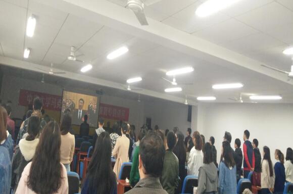 上午九时,伴随着庄严的国歌声,“十九大”开幕式正式开始。习近平总书记代表第十八届中央委员会向大会作报告,他详细总结了“十八大”以来,党领导人民推进改革开放、促进社会主义现代化建设的生动实践和先进经验,阐述了关于中国政治、经济、文化等各方面深入而独到的见解,长达三个多小时的报告内容丰富而真挚,使大家对实现中华民族伟大复兴和中国改革发展方向有了更深刻的认识,对未来中国的发展亦充满了信心。报告期间,每位师生都聚精会神的认真聆听并记录着习近平总书记的发言,不时也为习近平总书记的精彩讲话发自内心地鼓掌,整场活动在严肃、认真的气氛中画下了圆满的句号。