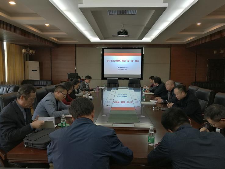 张卫良院长首先作中心发言,对党的十九大报告进行了深刻解读,并就学习贯彻落实党的十九大精神,推进“双一流”建设提出了新的要求。张院长指出,学习贯彻十九大精神,研究新形势下党的建设若干问题,是我们作为马克思主义教育教学工作者的使命,也是我们作为马克思主义研究者的使命;我们要把党的十九大精神及时融入课堂教学之中;要深入研究习近平新时代中国特色社会主义思想,以新思想为指导,进一步提升科学研究能力,提升领导班子执政水平;要抓住发展机遇,凝心聚力,推动学校、学院“双一流”建设。
