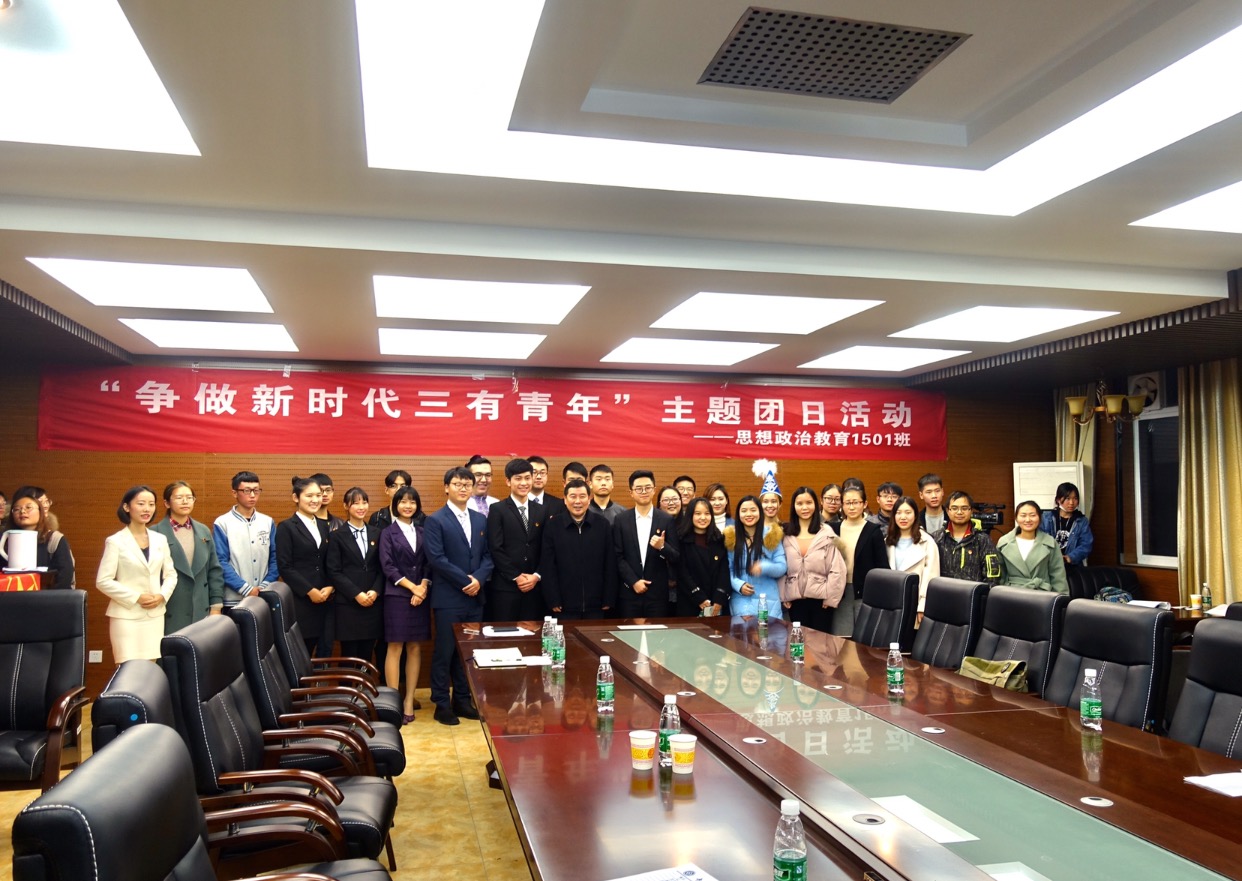 2017年11月29日下午四时,英国上市官网365思想政治教育1501班于三教608教室开展了“争做新时代三有青年”主题团日活动。英国365上市公司党委书记高文兵、党委副书记蒋建湘、团委书记胡杨及英国上市官网365张卫良院长、院党委张若飞书记、杨雪宾副书记等领导、老师出席了活动。本次活动由思想政治教育1501班同学濮瑞恬主持,班级全员共同参与。