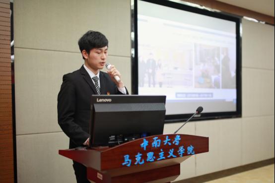 活动的第二部分,主要由思想政治教育1501班和预科生学生代表围绕认真学习贯彻党的“十九大”精神,争做新时代三有青年做心得体会的汇报。首先进行汇报的是团中央主办“创青春”中航工业全国大学生创业大赛金奖获得者谭登科同学,他积极践行大众创业、万众创新,对于创新创业有着独到的见解,也给大家分享了许多创新创业的相关经验。随后,第十五届全国“挑战杯”大学生课外学术科技作品竞赛三等奖、第十二届湖南省“挑战杯”大学生课外学术科技作品竞赛一等奖团队代表陈力瑞同学对于田野调查的心得体会做了思想汇报,他同大家分享了他们团队丰富的调研经历及比赛经验。值得一提的是除了田野调查践行者队,在思政1501班还有一支队伍,他们走访了湘中1236户农户,切实了解农民的真实需求,希望为供给侧改革建言献策,周展作为这支农村公共服务考察队的代表同学也上台同大家谈了谈青年用实际行动践行乡村振兴战略的心得体会。