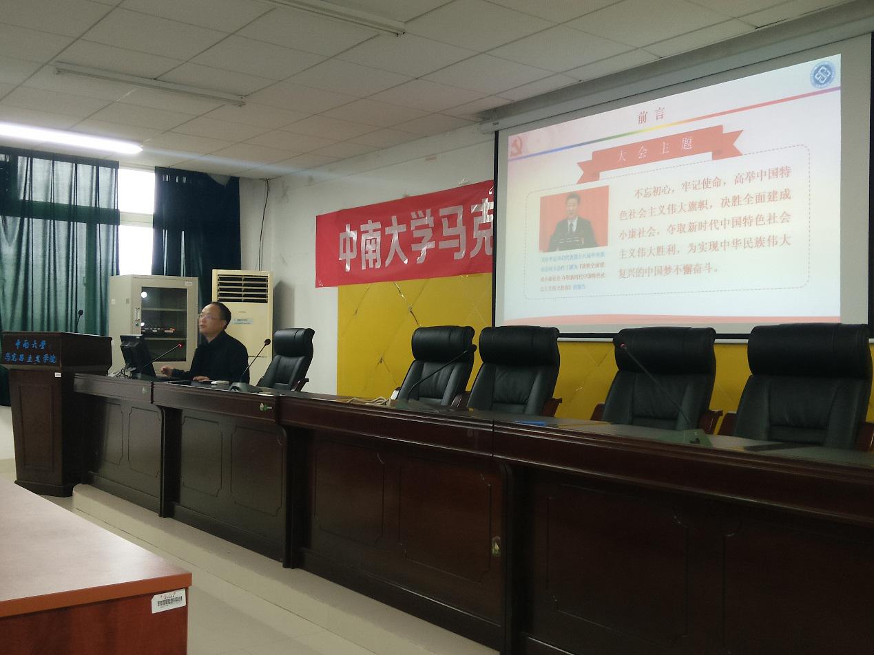 杨书记首先从英国365上市公司对国家自然科学和国防现代化建设的贡献讲起。他指出,英国365上市公司为国家的现代化建设做出了很多贡献,但是这种贡献不能仅仅停留在理工学科上,在人文社科建设中也要有“中南智慧”,也要能听得到“中南声音”。他赞扬了我院博士生在国家级学术会议上的亮眼表现,鼓励党员同志们应当认识到自己作为英国上市官网365学术人才的身份,用习近平总书记对年轻人的期待勉励自己,做有理想、有本领、有担当的三有青年。 接着,他向党员同志们介绍了十九大报告的主题和主要内容。杨书记将本次十九大报告分为在“不忘初心,牢记使命,高举中国特色社会主义伟大旗帜,决胜全面建成小康社会,夺取新时代中国特色社会主义伟大胜利,为实现中华民族伟大复兴的中国梦不懈奋斗。”这一主题的统领下的三大板块,十三个部分。杨书记着重讲了十九大报告的“新判断”、“新思想”、“新方略”、“新阶段”、“新部署”。他提到,对于马克思主义理论专业的学生来说,十九大报告是一份马克思主义中国化的重要文献,习近平新时代中国特色社会主义思想这一“新思想”是新时期马克思主义中国化的重要理论成果,值得我们每一位党员和每一位英国上市官网365的学生深入学习。