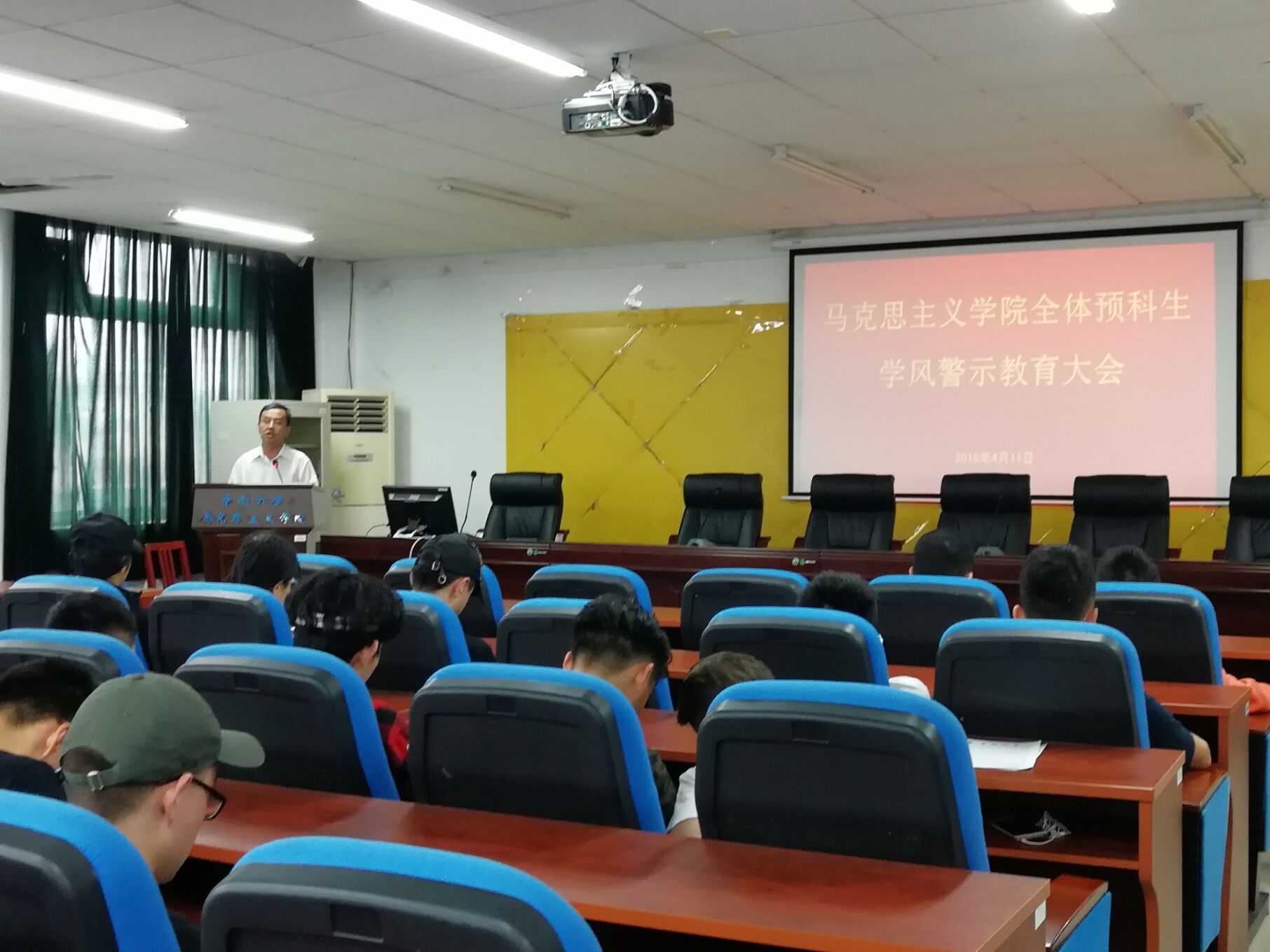 随后,刘智慧老师和铁木尔老师针对上课、晚自习、晨练的出勤情况和学院学风建设等方面的纪律进行说明和强调,肯定优秀、指出不足,向全体预科生提出殷切期望,期盼同学们能以奋发向上的精神面貌、积极向上的学习态度在预科阶段内勤奋刻苦,敢为人先,争做优秀的中南学子。