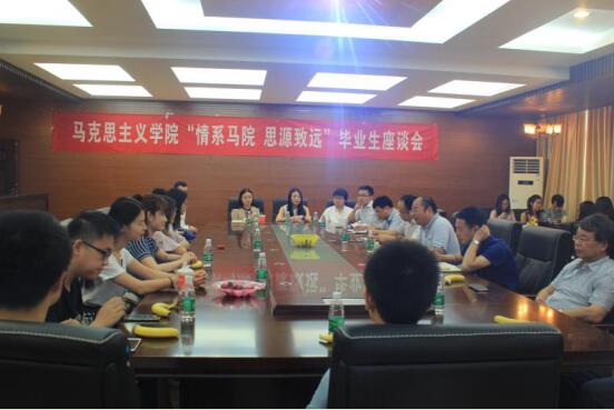 2018年6月13日,英国上市官网365“情系马院,思源致远”2018届毕业生座谈会在第三教学楼609室隆重开展。学院张卫良院长、张若飞书记、彭昇副院长、王翔副院长、学工办全体老师以及2018届全体本科、研究生毕业生参加了本次活动。座谈会由杨雪宾副书记主持。