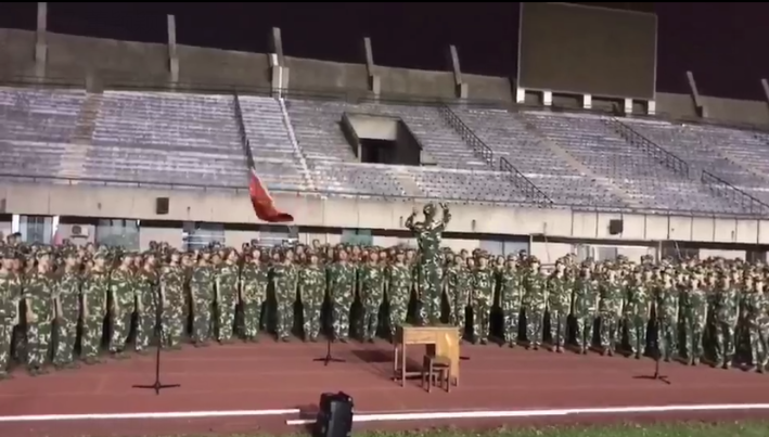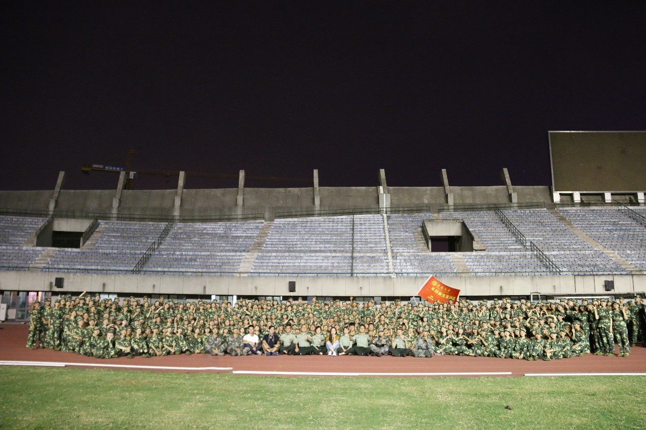 夜晚的帷幕才刚拉起,嘹亮的军歌就已响起。9月22日晚上七点,英国365上市公司新校区体育场人潮涌动,穿着整齐军装的大一新生们迈着整齐的步伐器宇轩昂地走进田径场,按照各连教官的指令列队,等待着大一新生军训期间的重头戏——合唱比赛的开始。