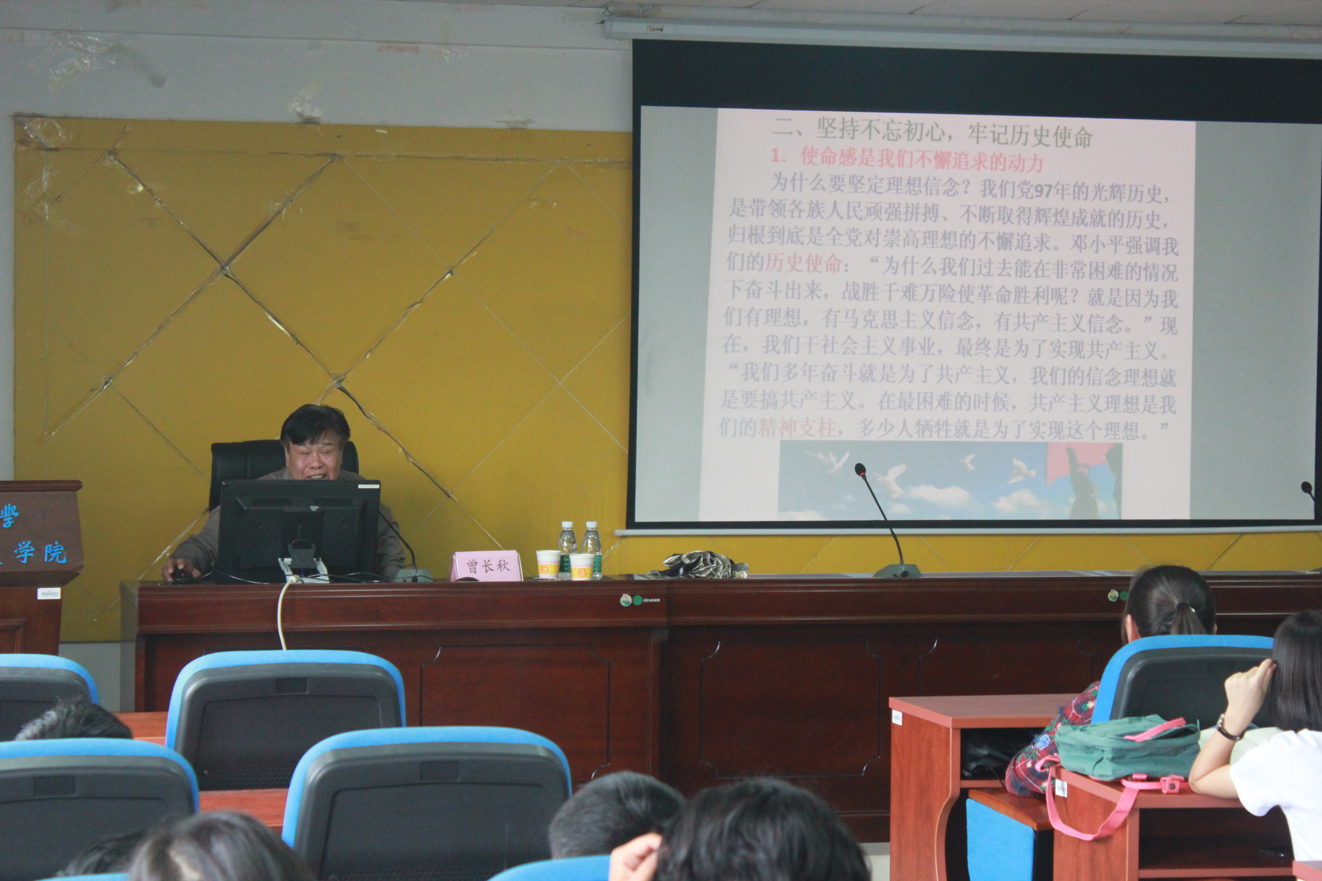 2018年9月27日下午14:00,我院特邀关工委老师曾长秋教授于第三教学楼407教室举行了以“理想信念,爱国主义”为主题的关于2018级全体预科新生的思想教育活动。