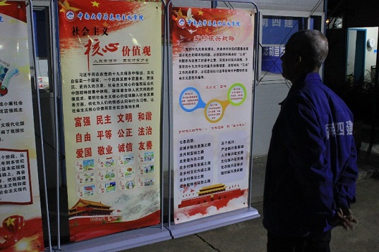 会前,马院师生在工地门口架起习近平新时代中国特色社会主义思想、党的十九大精神、社会主义核心价值观宣传展板,并就其中的热点和工友们进行了深入的交流。会议伊始,院党委副书记杨雪宾表示很荣幸受到本次宣讲邀请,这是党的十九大精神进基层的一次有益尝试,也欢迎工友们来学院进行交流。副院长王翔教授以“工”字的写法为引,以伟大领袖毛主席的经典阐释“头顶着天,脚踩着地,工人两个字结合在一起,就是一个天字。这个天,是天下的天。工农大众,就应该是这天下的主人”拉近了与四建工人的距离。随后重点宣讲十九大大会主题、主要成果等基本内容。其中在“新时代”问题上结合“三个意味着”“五个时代定位”“十方面成就“介绍了“新时代从何而来?”这一主题。从主要矛盾的变化、中国国际关系、国际地位、人民思想道德水平和生活水平的变化解释了“新时代有什么特征?”这一主题。在“新时代我们要做什么?”这一主题上,副院长王翔教授从新时代的新使命、新目标出发结合生活实例,例如:洞庭湖污染防治、工人生活水平的提高阐发了新时代提出的六个方面总要求以及八个方面的重要任务。其中着重强调了党员同志要在思想上入党,在日常工作中坚持初心做人民子弟兵。并衷心的祝愿湖南四建全体工友生活幸福身体健康。受到了工友们的热情鼓掌。