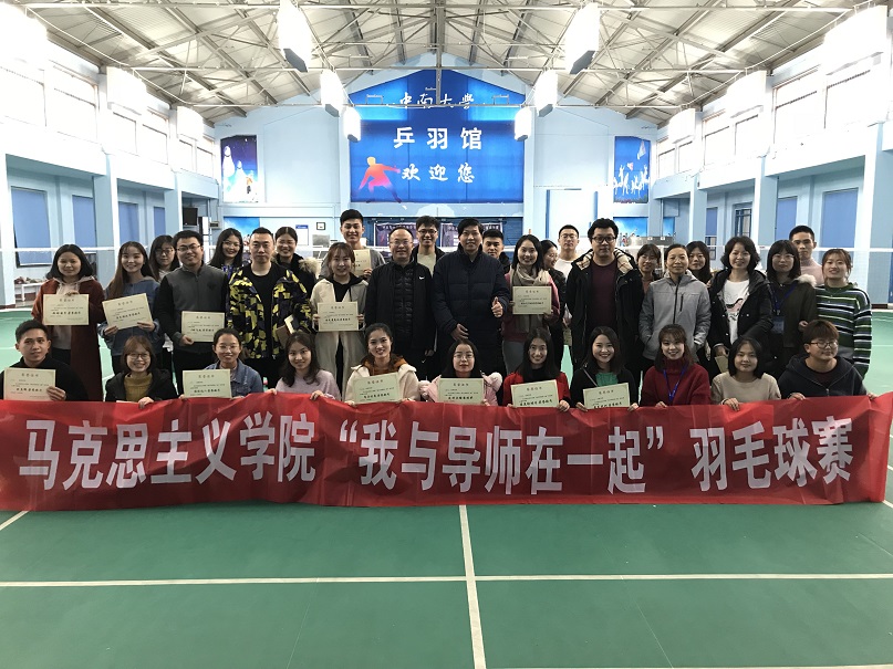 2018年11日18日上午8:30,英国上市官网365“轻羽飞扬·与您同行——我与导师在一起”羽毛球赛于南校区乒羽馆成功举行。学院党委副书记杨雪宾莅临比赛现场与师生进行了亲切的交流,贺才乐老师、刘伟老师、吴争春老师、罗春梅老师、胡晓老师、刘临达老师、秘金雷老师、段琼玲老师等和学院研究生共同参与了本次活动。 比赛设置男子单打、女子单打和混合双打三项,采取“初赛-晋级制”和“决赛-三局两胜制”。经过总计30场激烈的比拼,三项比赛都顺利落下帷幕。男子单打比赛中,向东旭获得冠军,陈力瑞获得亚军,刘临达老师获得季军,学院党委副书记杨雪宾为获奖者颁奖;女子单打比赛中,赵纯怡获得冠军,吴争春老师获得亚军,李美华获得季军,刘伟老师为获奖者颁奖;混合双打比赛中:“向东旭-赵纯怡”组合获得冠军,“秘金雷-吴艳峰”组合获得亚军,“贺才乐-张哲榕”组合获得季军,吴争春老师为获奖者颁奖。 “培养德智体美劳全面发展的社会主义建设者和接班人。”作为新时代的研究生在保证自己学业、学术的同时,也要积极投身到体育锻炼中来,积极和导师进行全方位、深层次的沟通,争做新时代德智体美劳全面发展的社会主义建设者和接班人。