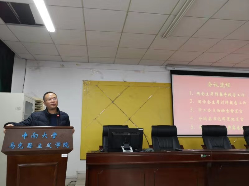 会议后半段,研会主席隋嘉奇向在座的同学们汇报了2018年研究生会在思想引领、组织建设、心理健康等几个方面的主要工作,并就研究生会在本学期将要开展的工作进行了简要说明。