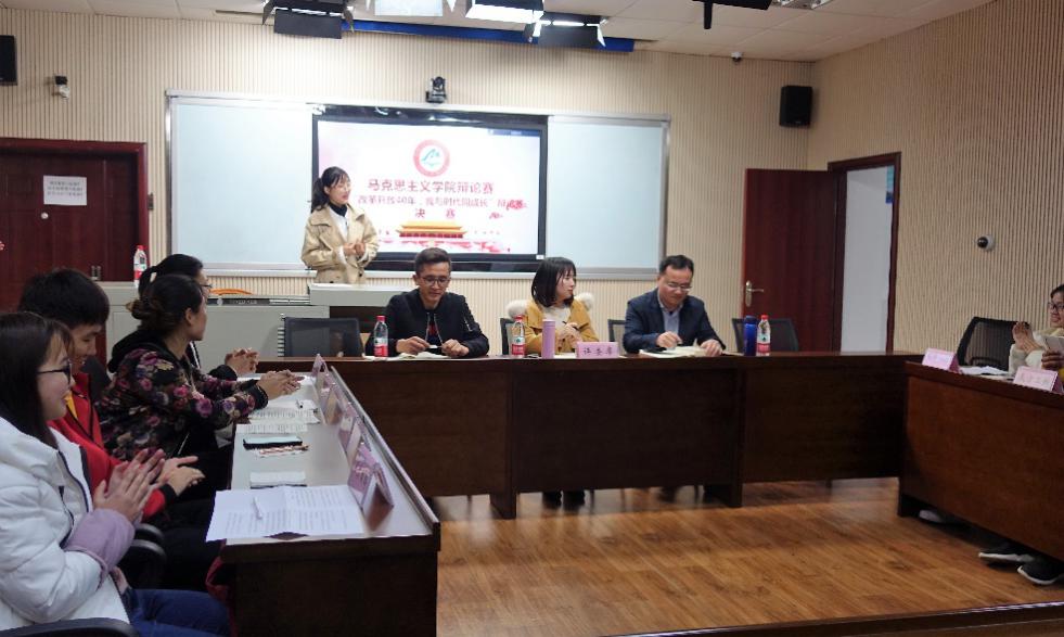 3月13日晚七点,“改革开放四十年,我与时代同成长”辩论赛在三教6楼多媒体教室如期举行。本次辩论赛出席评委有学院胡栋材老师、本科生辅导员邹秉虹、预科生辅导员叶尔波拉提。本次辩论赛由团学会副主席李明珠主持。