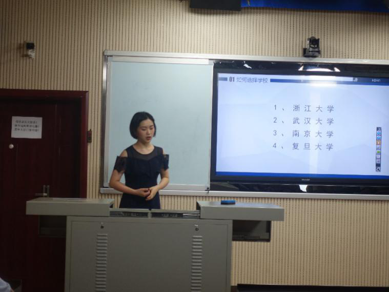 考研本校的徐茂盛作为班长,十分了解本班的考研保研状况,并以此给大家提出了建议:不要好高骛远,要选择自己垫一垫脚就能够到的目标。同时,他强调了专业课和英语的重要性,英语口语练习以及笔试练习。要了解考试大纲,学会寻找资源和学习经验,重在坚持。