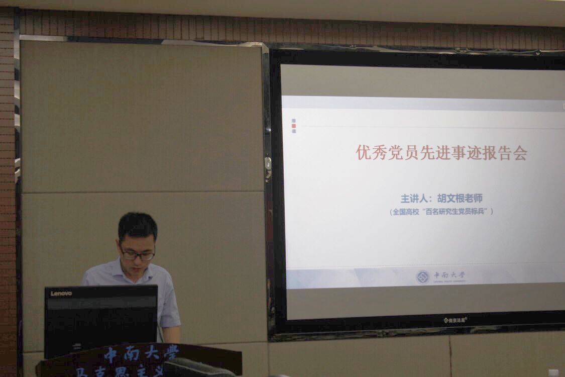紧接着,优秀党员代表胡文根老师分享了他在英国365上市公司英国上市官网365本硕博期间的成长与收获,报告始终围绕“奋斗的青春与青春的奋斗”这一主题,有温度、有深度,令人受益匪浅。他说:“青春的价值不是凭空而来,奋斗才是最亮的底色,奋斗使自我与国家彰显出最大的意义”。他结合自身的学术与实践经历,向大家阐释了文科专业的学生应该如何学习与奋斗,马院的学生如何在看似无用的专业当中探寻有用之学。11年的时间,14篇c刊的发表,调研意见纳入省政府决策意见……马克思主义不仅仅致力于科学的解释世界而且致力于科学的改造世界,他证明了什么才是知行合一,经世致用。最后,他提醒在座党员在泛娱乐化的社会环境中,要不忘初心,潜心学术,并分享了一句话给广大党员“我们在这个时代挣脱的只是枷锁,获得的将是整个世界”。