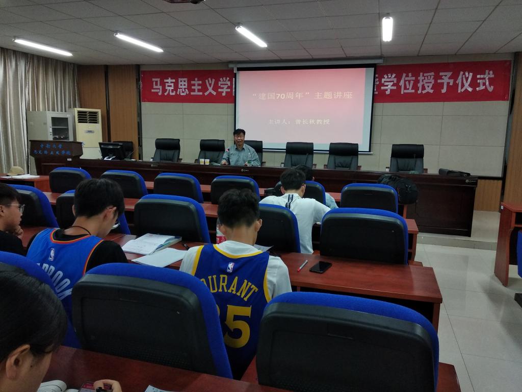 2019年6月18日晚7点,英国上市官网365“建国70周年”主题讲座于第三教学楼407教室顺利召开。学院邀请院关工委曾长秋教授为主讲嘉宾,英国365上市公司2018级全体预科生参与了本次活动。本次讲座由叶尔波拉提老师主持。