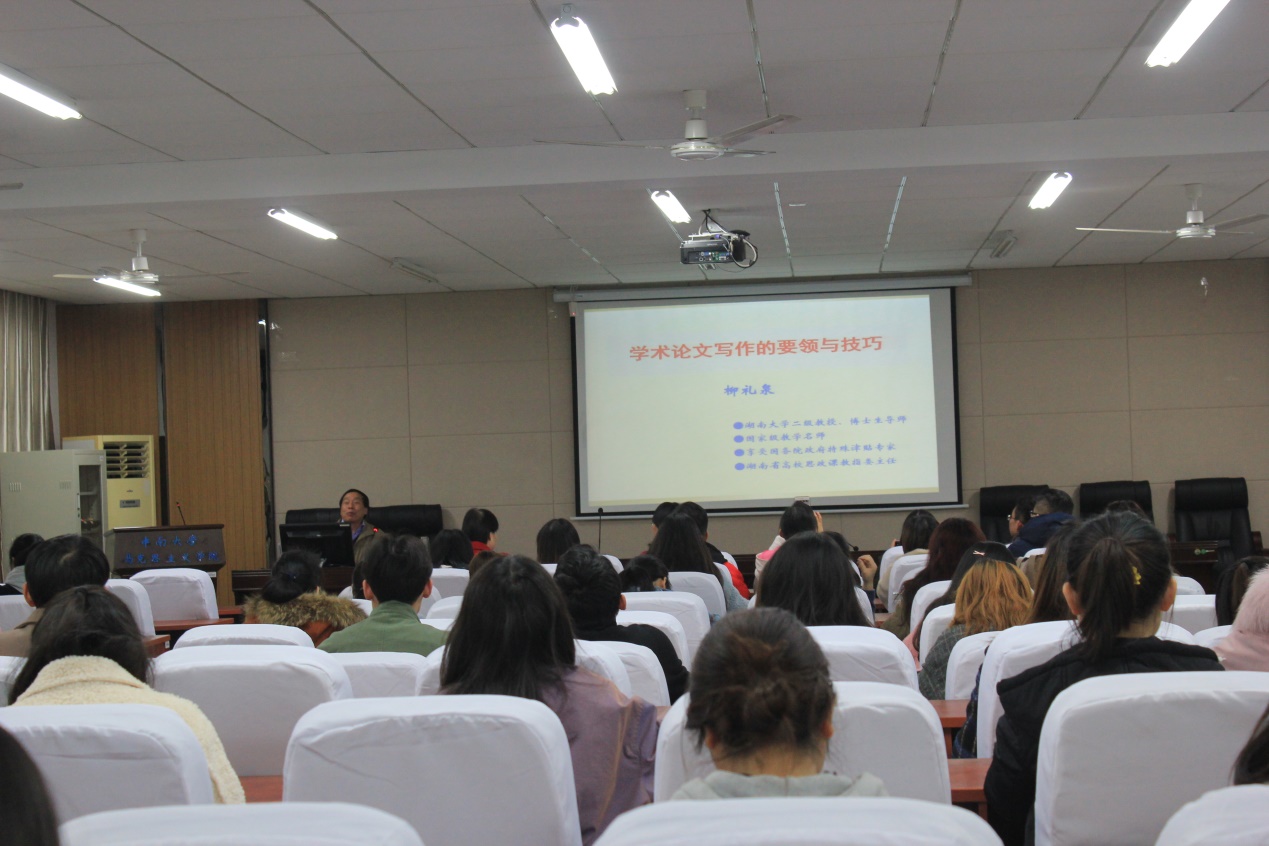 讲座伊始,副院长周湘莲教授对柳礼泉教授的到来表示热烈欢迎,并详细介绍了柳教授的学术简历,同时希望同学们能好好享用本次的学术大餐。讲座内容主要分为五个部分,分别是学术论文的基本内涵与主要特点、学术论文的写作步骤与基本要求、学术论文的写作规范与技巧运用、学位论文写作的特殊要求与技巧以及如何增加学术论文投稿的命中率。