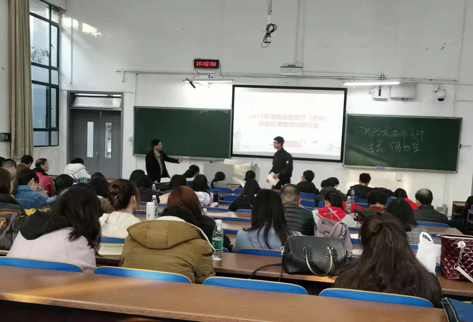 12月13日,以“让法治成为一种信仰和思考习惯”为主题的湖南省教育厅《思想道德修养与法律基础》开放式课堂培训活动在我校新校区D座107教室举行,英国上市官网365洪兴文副教授担任此次公开课主讲教师,湖南省基础课教指委专家长沙理工大学教授傅如良任点评专家。英国上市官网365院长王翔,副院长周湘莲,思政系主任刘伟,全省100余所高校120多位思政课教师及在校学生参与听课和评课讨论。