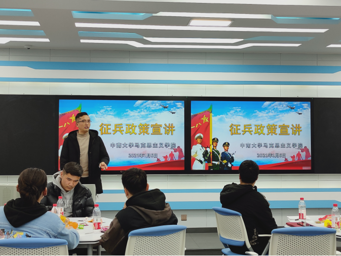 紧接着,陈力瑞老师从“优先优待”、“入伍前期”、“退役复学”三个方面对征兵入伍进行了详细的介绍。